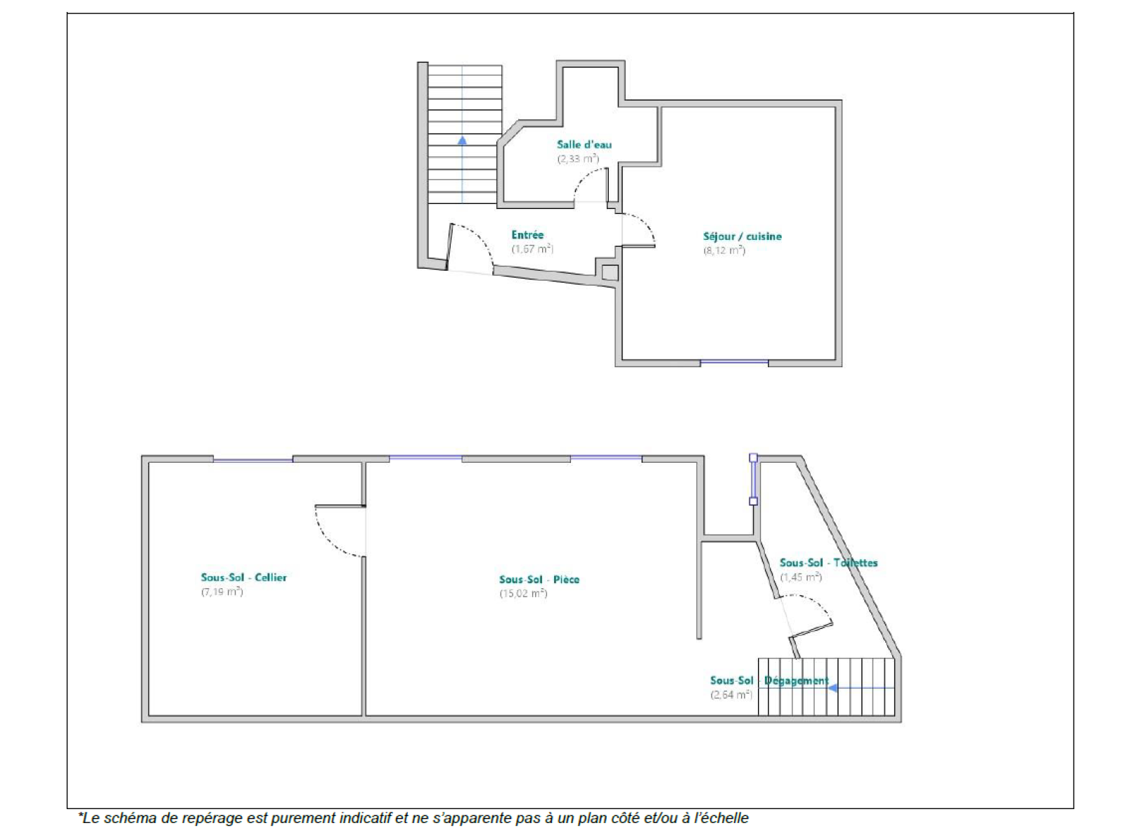 Un sous sol aménagé de 27.64 m² avec un coin chambre de 15.02 m², un cellier et WC.