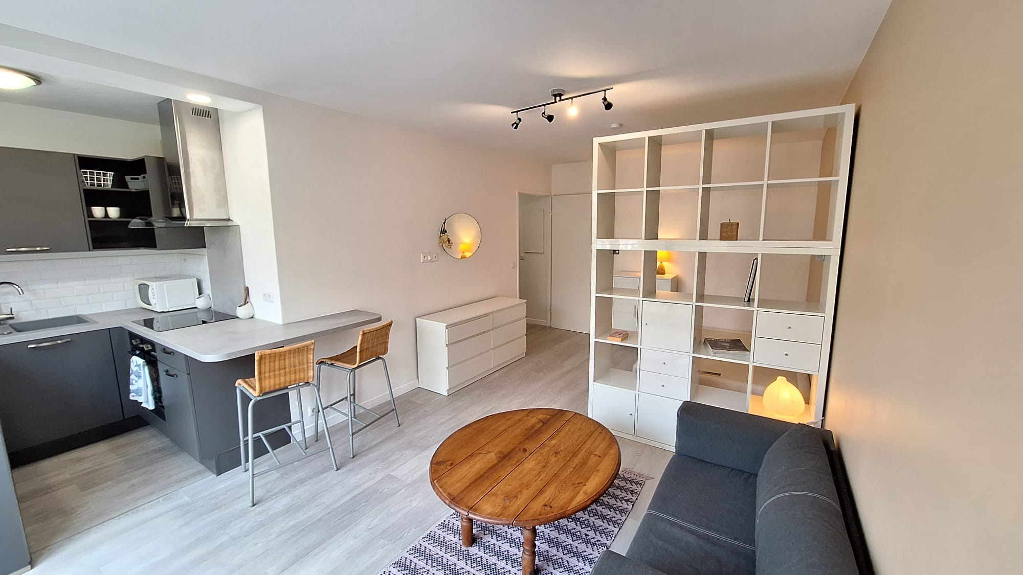 un séjour cuisine aménagée, une salle d'eau avec WC, 2 chambres avec balcon.