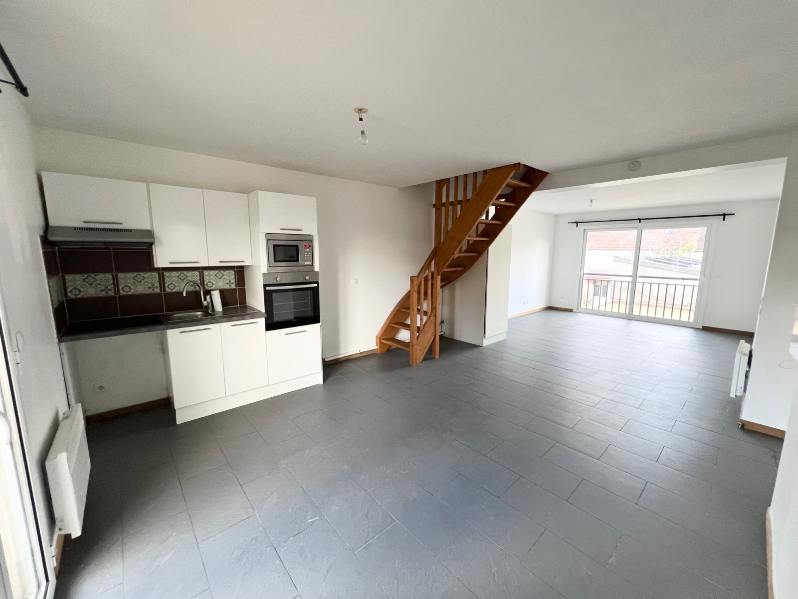 Au RDC une entrée, un séjour de 30.61 m² donnant sur un balcon, une cuisine ouverte aménagée semi-équipée, un escalier